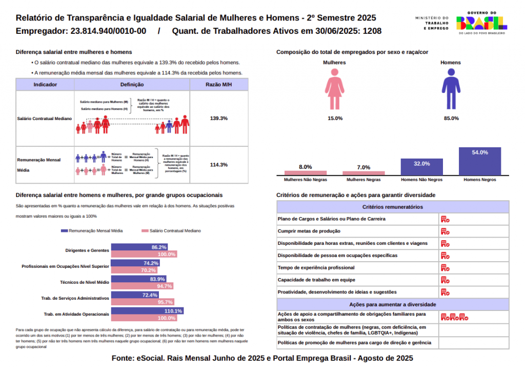 Acreditamos que a transparência é fundamental para construir uma cultura organizacional inclusiva e justa. Ao promover a transparência em relação à igualdade salarial e critérios remuneratórios, estamos não apenas cumprindo nossos valores, mas também contribuindo para um ambiente de trabalho mais justo e sustentável.
